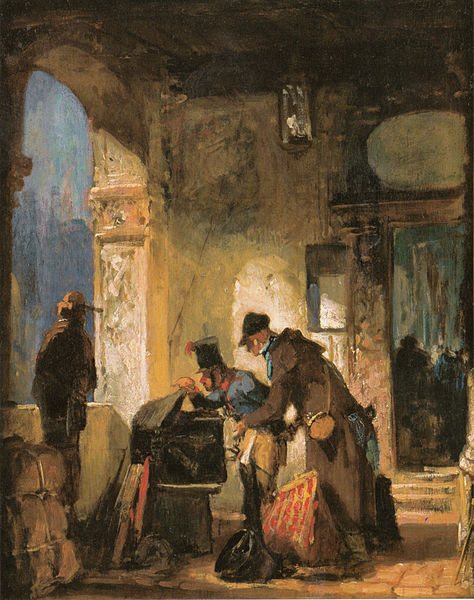 Carl Spitzweg: Die päpstliche Zollwache. Foto aus: Joachim Nagel: Carl Spitzweg: Belser, Stuttgart 2008, S. 52, via Wikimedia Commons